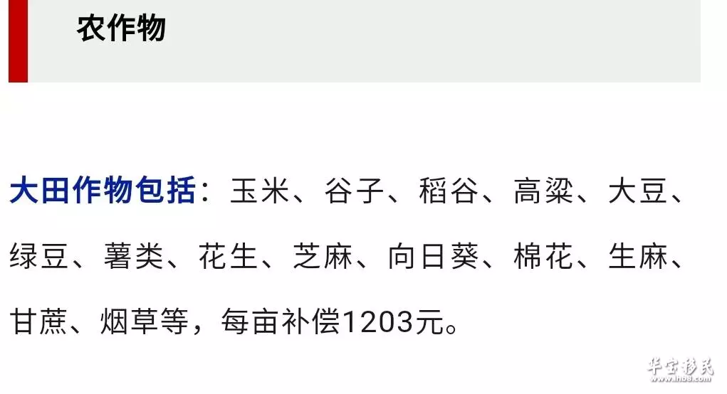 比如说农作物的补偿,大田作物包括玉米花生这一类,每亩是1203元。
