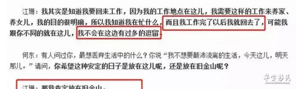 记者问江珊:“你希望这种安定的日子是在这儿,还是在旧金山。”