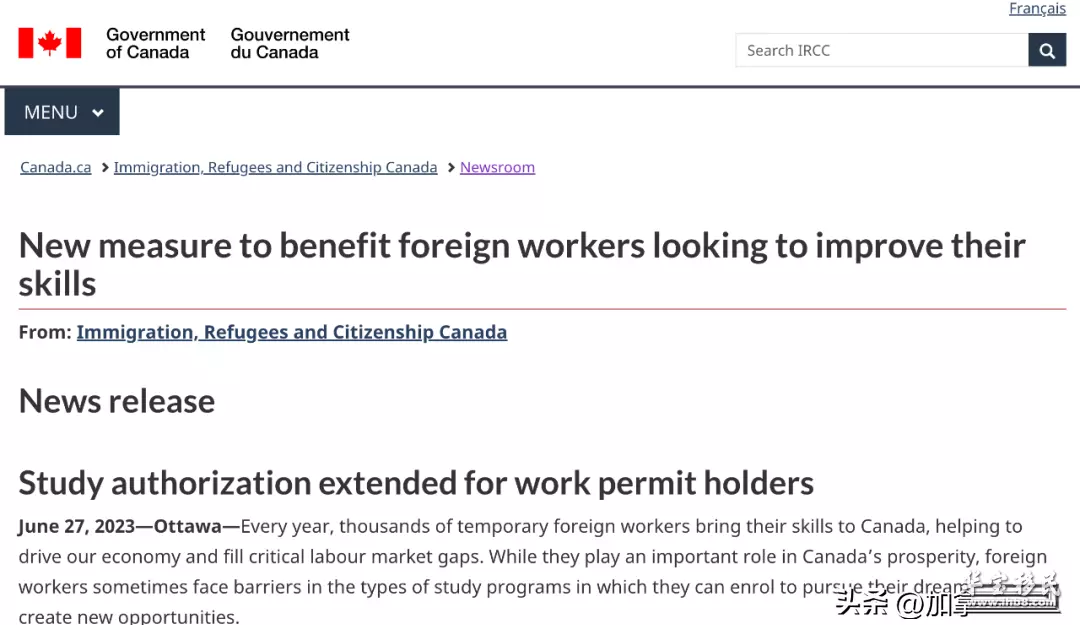 这项临时措施将适用于截止到2023年6月7日,持有有效工作许可或还在等工作许可延期下来的人。但是,如果外国工人想要学习的时间超过了其工作许可的期限,他们将需要申请学习许可。