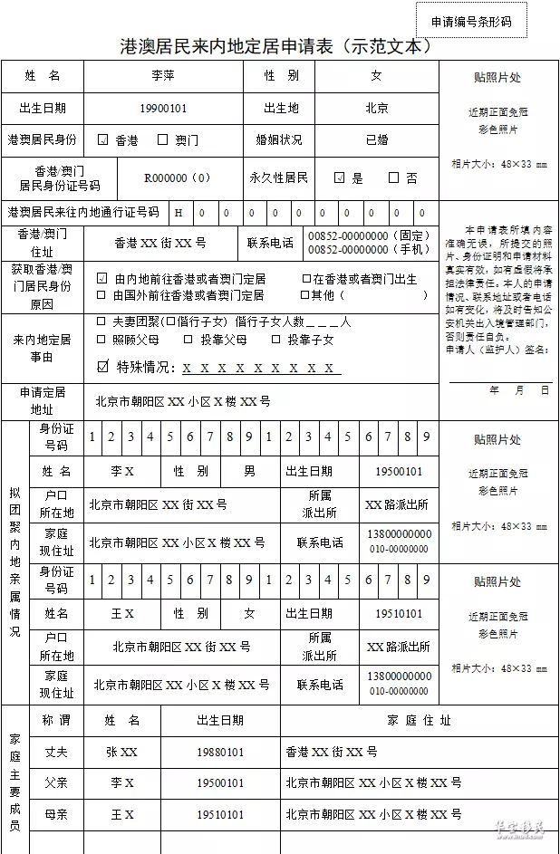 那怎么才算符合条件的申请人?根据《港澳居民来内地定居申请表》中来内定居事由中有写明:夫妻团聚、照顾父母、投靠父母、投靠子女或者其他特殊情况。递交申请时需要提供的材料有:交验申请人的香港居民身份证、港澳居民来往内地通行证及其复印件。还有一个重要文件就是,申请人自愿放弃香港居民身份的书面声明。另外各个县级以上公安机关出入境管理机构还会有其他相应材料的要求,比如,广东除了上面这些基本材料,还需要申请人提供住房保障证明、生活保障证明、户籍注销证明等等材料。