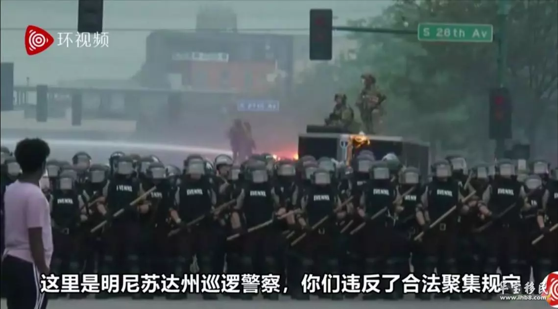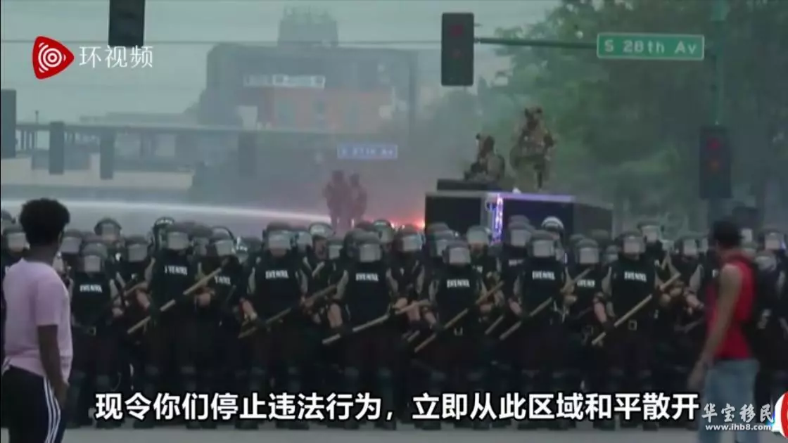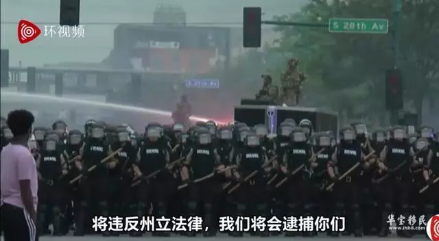警察背后防爆车上荷枪实弹的就是国民警卫队。