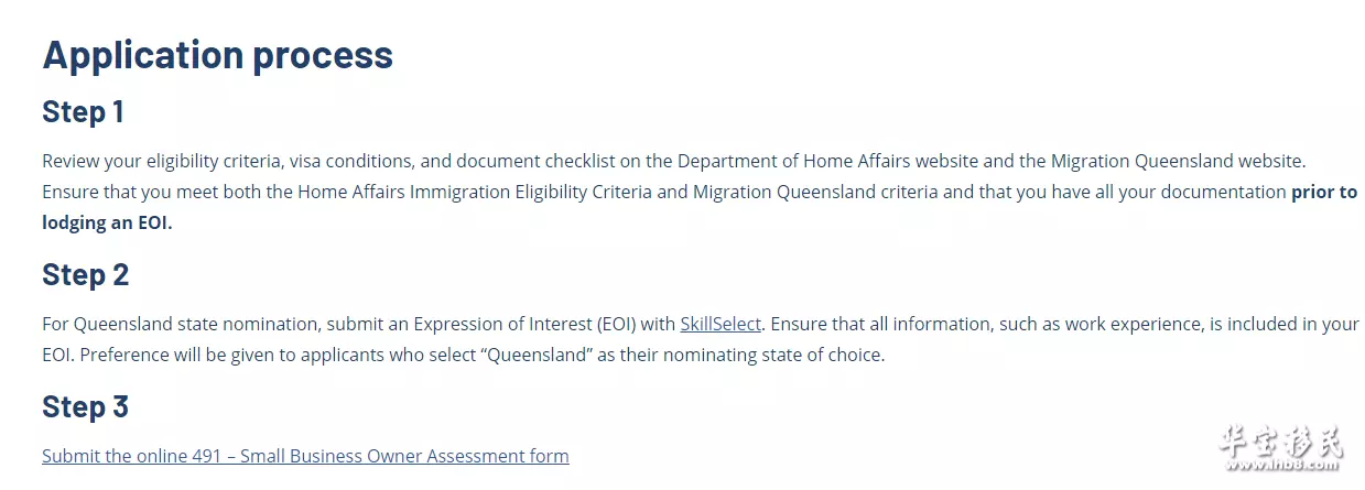 步骤2:向skillselect提交意向书(eoi)。确保所有信息,如工作经验,都包含在意向书中。选择“昆士兰”作为提名州的申请人将获得优先考虑。