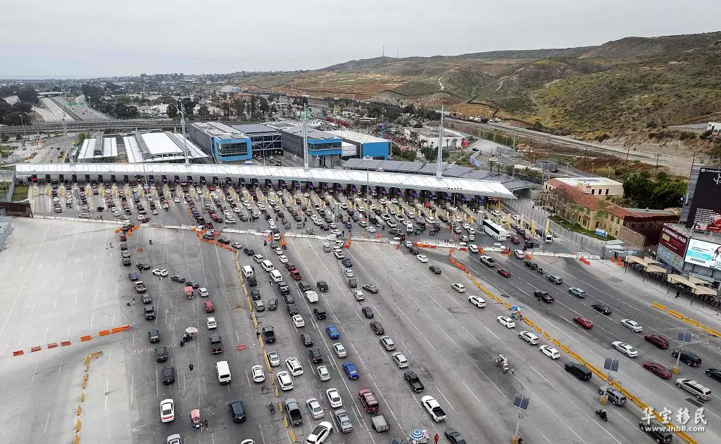 当地时间2023年5月12日,墨西哥蒂华纳,航拍圣伊西德罗入境口岸,排队进入美国的汽车。美国实施了严厉的新移民政策,为抵达美国南部边境的绝望移民设置了一个不确定的未来。视觉中国 图