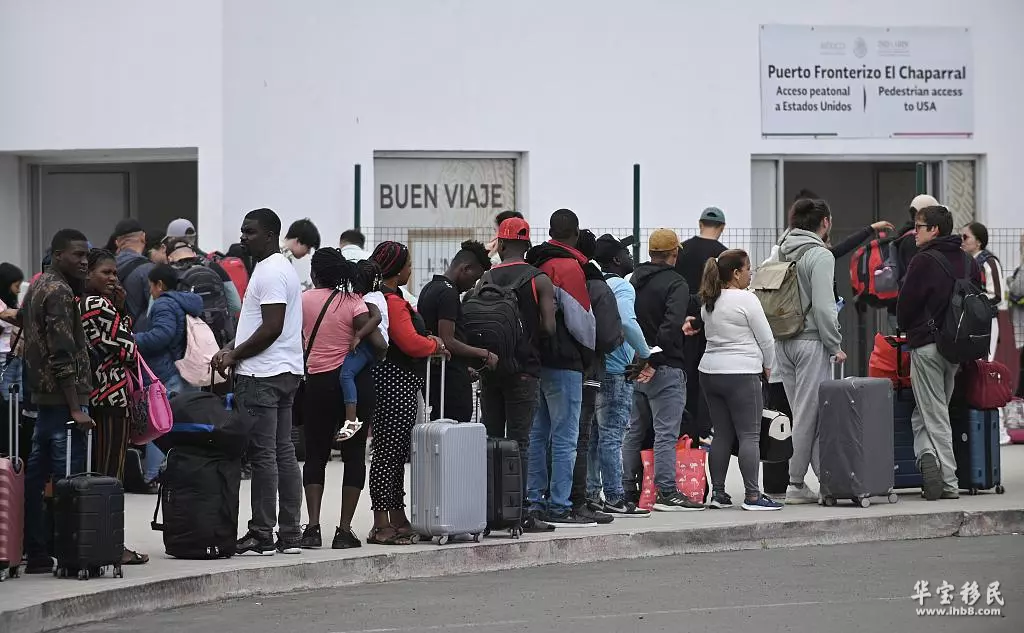 当地时间2023年5月16日,墨西哥蒂华纳,通过预约请求进入美国并受理成功的移民正在排队。视觉中国 图