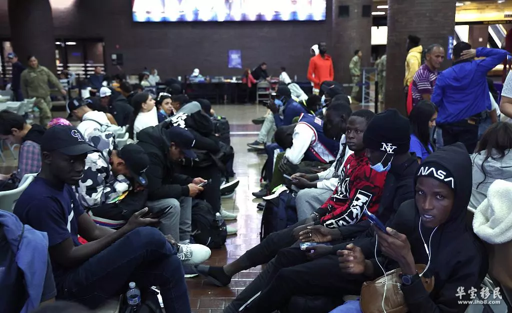 当地时间2023年5月15日,美国纽约,移民在港务局巴士总站被扣留,这些移民从得克萨斯州和墨西哥边境而来。视觉中国 图