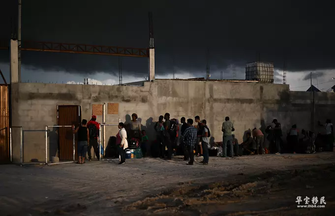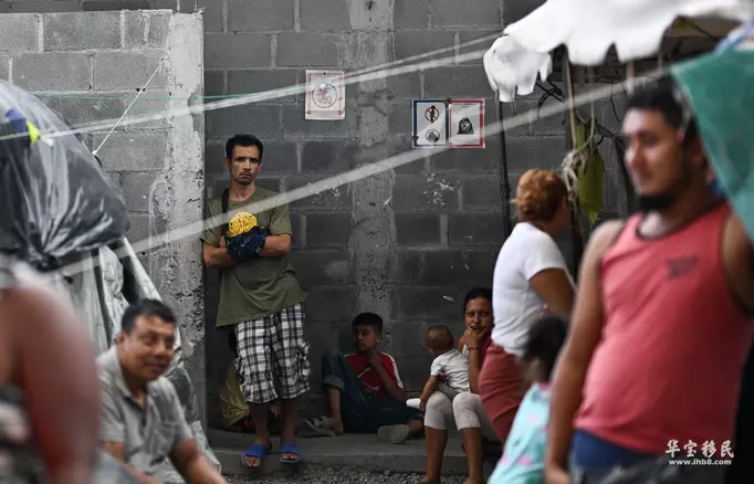 当地时间2023年5月16日,移民在美墨边境城市墨西哥雷诺萨的一处收容所外等待进入。新华社 图