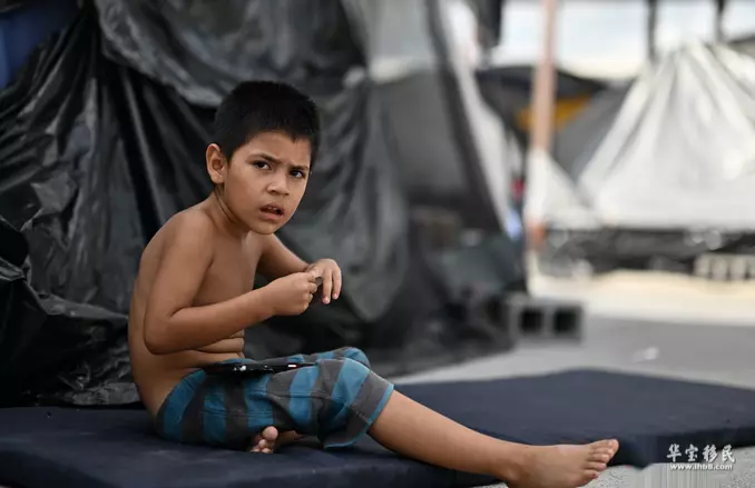 当地时间2023年5月16日,这是在美墨边境城市墨西哥雷诺萨的一处收容所内拍摄的移民儿童。新华社 图