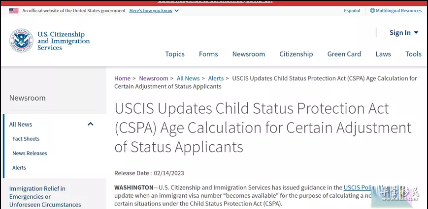 终于政策有了松绑:在今年2月14日,美国移民局在《美国移民局政策手册》中发布了政策指南,更新了当移民签证配额“可用”时,如何根据《儿童身份保护法》(cspa)在特定情况下计算孩子的年龄。自2月14日起,移民局在审理i-485身份调整申请时,将据此锁定儿童的年龄。