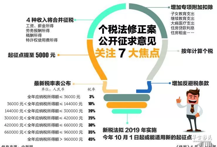 综合北京《新京报》《北京青年报》报道,本次个税法修正案草案主要有六大修改内容。