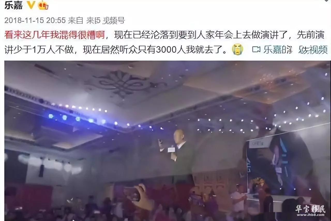 18年,乐嘉用自嘲的口气在网上说:看来现在的我混的很差,往常演讲一万听众都不来讲,现在只有3000人,我也愿意讲了。