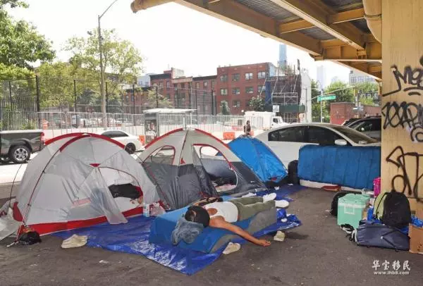 中国日报网7月27日电 据《纽约邮报》24日报道,纽约的移民危机已经失控!市中心庇护所外人行道上的一个又一个临时搭建的“家庭”、各式各样的争吵不绝于耳、“移民”们懒洋洋地坐在人行道的椅子上抽烟吃饭、他们的小孩肆意走动奔跑、迷你帐篷的出现更是令现状雪上加霜……