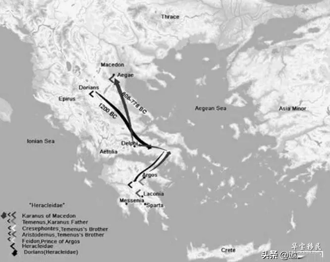 在讲述叙洛斯的三位孙子特米诺斯、阿里斯托得摩斯和克瑞斯丰忒斯是如何抽签决定伯罗奔尼撒半岛的土地划分,并分别将阿尔戈斯、斯巴达和麦西尼亚划为自己的领地时,多利亚人不过是在掩盖这样的一个事实,三支多利亚军队曾先后占领过这些地区。