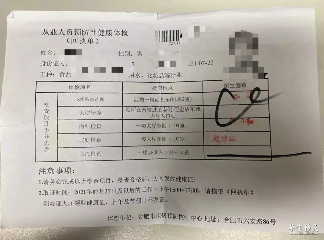 三个工作日后,记者在合肥市疾控中心官网输入体检单上的编号,查到了许安代检的体检报告情况:心肝肺脾体征正常,无化脓性或渗出性皮肤病、x线胸部透视正常、无痢疾杆菌、无伤寒或副伤寒杆菌、谷丙转氨酶正常,记者顺利拿到了从业人员预防性健康检查合格证明。